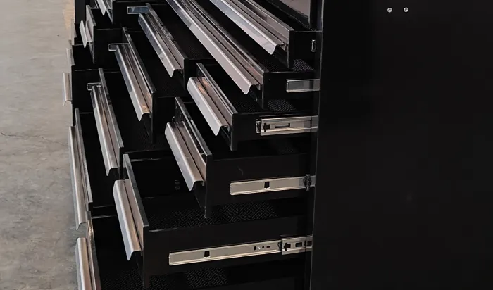 قضبان الشريحة الصامتة: تحتوي خزانة الأدوات السوداء متعددة الوظائف على قضبان الشريحة الصامتة الشاقة ، مع إجراءات سحب سلسة وقدرة على حمل الحمل القوية.