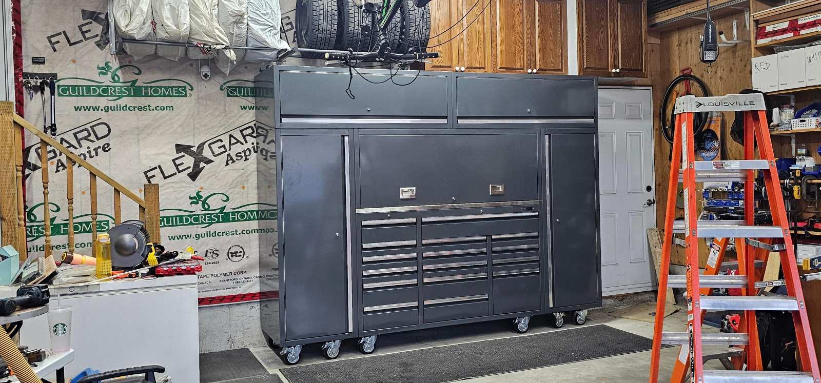 لم يضيع العميل أي وقت في وضع الخزانة لاستخدامها في المرآب الخاص به، وتسلط الصور الضوء بوضوح على كيفية تحويل تخزين أدواته - أنيق وسهل الوصول إليه وملائم للمساحة تمامًا. أكثر ما أثر فينا هو ثقتهم الصريحةNTالجودة والتصميم.