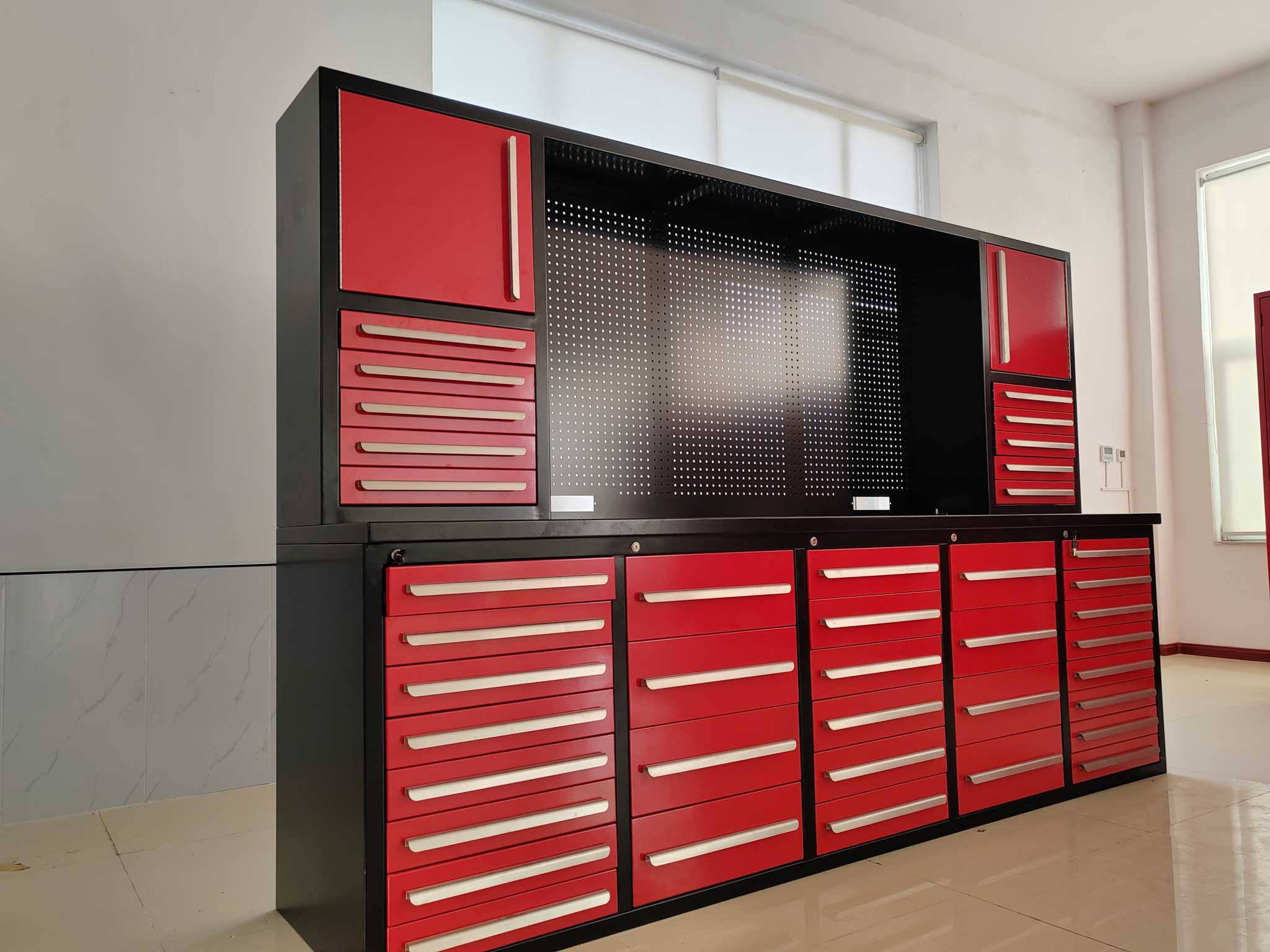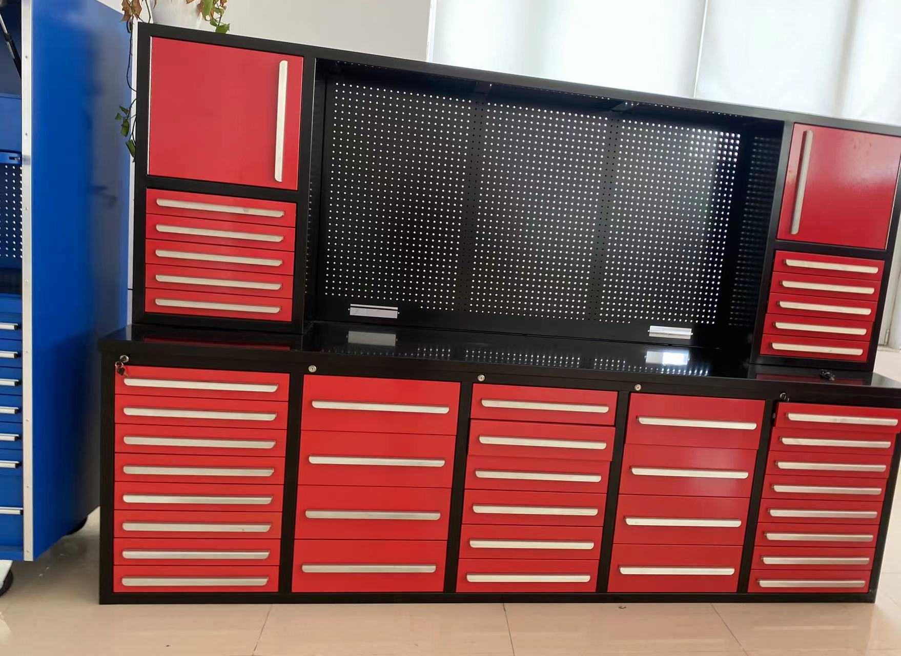 ميزة | مساحة واسعة لتخزين الأدوات والمعدات والتكوينات المتعددة ، بما في ذلك خيارات الأدراج متعددة الأدراج. |